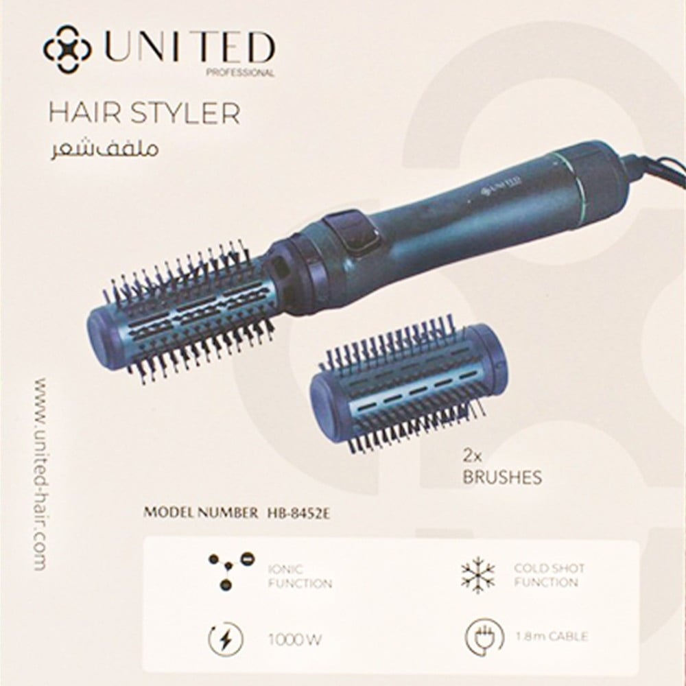مصفف الشعر الاحترافي مع فرشتين قابله للتغيير ومحرك باتجاهين 360 درجة من يونايتد HB-8452E
